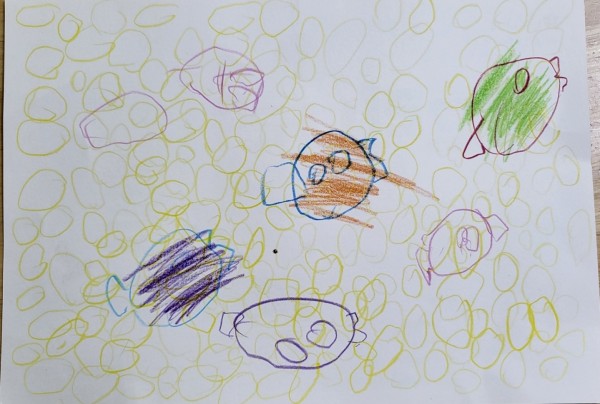 6. 꿈 : 물고기 키우는 사람 (여러개의 노란색 동그라미는 물방울이라고 표현했어요.)