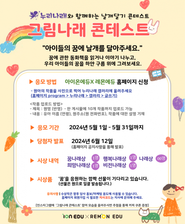 누리나래와 함께하는 날개달기 콘테스트 '2024 그림나래 콘테스트'가 진행됩니다!